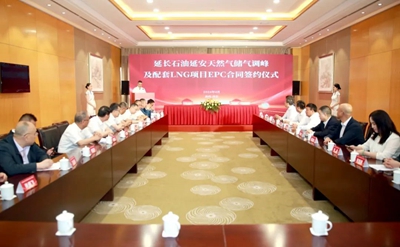 4月23日,延長石油延安天然氣儲氣調峰及配套LNG項目EPC總承包簽約儀式在西安舉行。延長石油煉化公司黨委書記、總經理烏忠理,副總經理馮奇國,項目建設指揮部黨委書記、指揮強挑戰,延長石油天然氣股份有限公司黨委書記、總經理高買華,北京石油化工工程有限公司(簡稱:北油工程)黨委書記、董事長許緘濤,紀委書記馬春寧出席簽約儀式。儀式由北油工程總經理助理、安全總監楊礫主持。