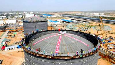 7月14日,由北京石油化工工程有限公司EPC總承包的延長(zhǎng)石油靖邊天然氣儲(chǔ)氣調(diào)峰及配套LNG項(xiàng)目?jī)膳_(tái)5萬(wàn)立方米大型液化天然氣儲(chǔ)罐穹頂氣頂升作業(yè)圓滿(mǎn)完成,標(biāo)志著外罐主體結(jié)構(gòu)建設(shè)完畢,全面轉(zhuǎn)入內(nèi)罐安裝階段,為項(xiàng)目后續(xù)建成中交奠定了堅(jiān)實(shí)基礎(chǔ)。