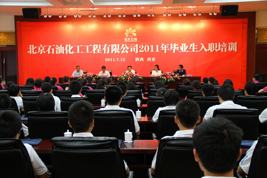 2011年7月12日,北京工程公司2011年畢業生入職培訓啟動儀式在西安陜西賓館隆重舉行。延長石油集團總經理助理兼北京工程公司董事長李大鵬、北京工程公司總經理劉純權出席了啟動儀式,代表公司對畢業生的到來表達了熱烈歡迎并發表了重要講話。公司副總經理國昕、副總經理羅杰、參與培訓的部門負責人以及來自北京、西安、上海三地共103名新入職的畢業生參加了本次活動。